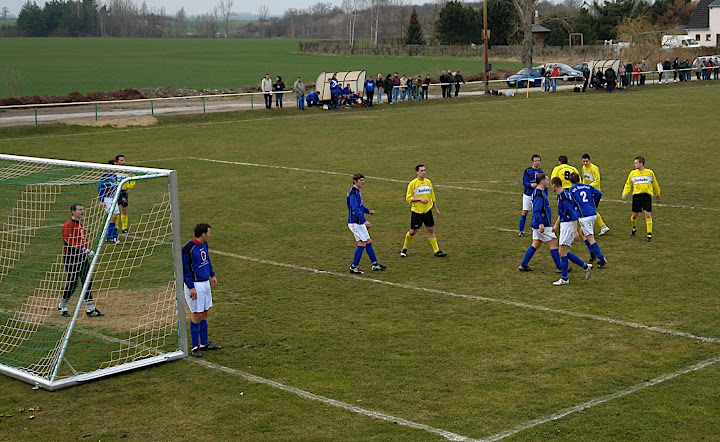 Beide Mannschaften neutralisierten sich, gefährliche Situationen entstanden vor allem nach Standarts. In der 31. Spielminute gelang den Gästen nach einem Stellungsfehler in unserer Abwehr die Führung. Völlig freistehend nach einem Eckball nutzte ein Querfurter Spieler die sich ihm bietende Möglichkeit und ließ Torhüter Jens Fischer keine Abwehrchance.